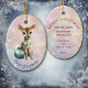 Voici un bel ornement de gardien pour le premier Noël de ce petit-fils ou petite-fille très spécial. L'avant a l'image d'un adorable petit fauve vêtu d'un arc bleu turquoise et assis avec une jolie ampoule turquoise. L'image est placée sur un arrière - plan bokeh rose pâle et lavande. Il y a un champ de texte personnalisé en bas qui dit actuellement "Premier Noël", mais vous pouvez modifier le texte ou le supprimer complètement, si vous le souhaitez. L'arrière de l'ornement a le même arrière - plan, avec des champs de texte à customiser. Faites-le dire ce que vous voulez !