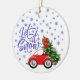 Petite voiture rouge avec sapin de Noël, grand arc rouge et flocons de neige, un joli cadeau d'ornement d'arbre pour les enseignants, les vendeurs de banque, les mailmen et les femmes, pour n'importe qui ! Stocking Stuffer ! Art original, copyright de Cherie's Art 2019.