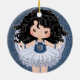 Célébrez la saison des fêtes avec cet adorable ornement de denim et de diamants. L'Arrière - plan est un motif denim. Les deux côtés sont les mêmes et présente une douce petite fille aux cheveux noirs vêtue de denim, de diamants et d'un tutu. Idéal pour votre petite diva à la maison. Parfait pour accrocher dans un arbre, un manteau ou tout autre affichage spécial.