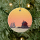 Grand Haven, Michigan. Il s'agit d'une photo de coucher de soleil du phare extérieur de Grand Haven, situé dans le canal de la rivière Grand, sur le lac Michigan. Il y a aussi un grand voilier dans la photo. Le ton de l'image est d'une couleur jaune orangé, qui lui donne l'atmosphère chaleureuse de l'été où qu'elle soit exposée. Le dos de l'ornement est vide pour que vous puissiez le personnaliser. Faites un grand cadeau ou un régal pour vous-même !