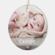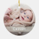 Le premier ornement de Noël d'un bébé avec votre photo et l'année dans un design minimaliste avec texte blanc. Ajoutez simplement votre photo et l'année, ajoutez cet ornement à votre panier, et profitez de ce souvenir sur votre arbre pour les années à venir. Photo Baby 1er Noël Céramique Ornament Jour férié Design | ©Melissa Patton - Designer