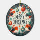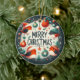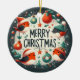 Illustration de Noël festive et ludique, avec quatre robins joyeux, portant chacun un chapeau de Père Noël ou une beanie d'hiver. Autour des oiseaux, des décorations de vacances comme des ornements, des saints, des étoiles et des flocons de neige, le tout arrangé en cercle. Au centre, les mots "Joyeux Noël" sont affichés en caractères gras et fantaisistes. Le design utilise une palette de couleurs vibrantes, orange, vert, rouge et blanc, dressées contre un arrière - plan sombre, évoquant un esprit de vacances joyeux. Changez la photo et le nom de votre bébé bien-aimé et offrez un cadeau festif d'ornement d'arbre de famille!