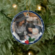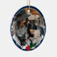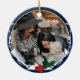 Un ornement photo de Noël avec une palette de couleurs bleu et blanc, et une décoration de fruits et feuilles. Ajoutez simplement votre photo et l'année, ajoutez cet ornement à votre panier et faites un merveilleux Noël. Photo Blue Holly Céramique de Noël Ornement Jour férié Design | ©Melissa Patton - Designer