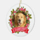 Cet adorable ornement aurait l'air si mignon sur votre arbre ! Avec sa belle couronne de pin aquarelle, ses roses rouges et roses et sa bannière rouge avec le nom de votre chien, ce serait un grand ajout ! Il fait aussi un merveilleux cadeau pour les amoureux de les chiens de votre vie.