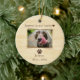 Honorez la mémoire de votre chien bien-aimé avec cet ornement commémoratif sincère, conçu pour célébrer l'amour et la joie qu'il a apportés dans votre vie. Avec un fond en bois clair orné d'empreintes de pattes et la phrase touchante "À jamais dans nos cœurs" avec un cœur à la fin, cet ornement offre un espace pour une photo chérie de votre chien, ainsi que les années de sa vie. Cet ornement personnalisé est un rappel réconfortant du lien que vous avez partagé, ce qui en fait un beau tribut à accrocher à votre arbre de Noël ou à exposer chez vous toute l'année.