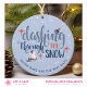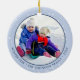 Célébrez la saison des fêtes avec cet ornement de Noël personnalisable qui présente une illustration fantaisiste d'un enfant faisant de la luge par une journée enneigée, associée à une typographie script élégante qui dit « Dansant dans la neige ». Modifiez ce design en ajoutant votre propre texte sur l'avant et l'arrière, puis téléchargez une photo favorite pour créer un souvenir unique parfait pour offrir à la famille ou aux amis.