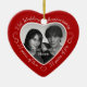 Célébrez une 21e année heureuse de mariage avec un ornement photo personnalisé dans un cadre en forme de coeur délicieux. Téléchargez simplement votre propre photo du couple marié et elle apparaîtra dans la découpe. L'entourage rouge présente une police et des décorations en caractères blancs. Les mots sont : 21ème anniversaire de Mariage - 21 ans d'amour - 21 ans de joie. Sur le dos, vous pouvez personnaliser ce keepsaké avec votre propre message et peut également ajouter l'année ou une date complète si vous préférez. Note : si vous aimez le 21e anniversaire de l'ornement mais que votre coeur est fixé sur une couleur différente, s'il vous plaît contactez-moi.