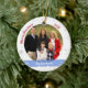 Ornement de Noël familial, tendance, élégant, mignon et personnalisé avec une photo personnalisée, les textes personnalisables "Les Jacobsons" + "Joyeux Noël" + "202X" + "Aimez-vous" + "Tante Kathy", et une image festive et sainte. Avec un cadre blanc avec des flocons de neige et des étoiles à l'avant et au dos.