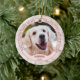 Ornement de Noël de l'arbre de Noël de décembre avec espace pour personnaliser ou personnaliser avec le nom de votre choix dans un élégant script de police, une photo personnelle de votre chien ou chat et l'année date de votre choix. Avec un joli motif de marbre gris pastel rose en arrière-plan comme décoration. Un souvenir unique de souvenirs que les grands-parents de vos enfants à fourrure, les autres membres de la famille ou vos amis adoreront !