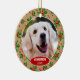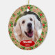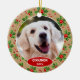 Joli ornement de sapin de Noël de décembre avec la possibilité de personnaliser ou de personnaliser avec le nom de votre choix dans une élégante écriture de police, une photo personnelle de votre chien ou chat et la date de l'année de votre choix. Avec un joli motif saisonnier de feuilles de houx vertes et de baies rouges en toile de fond comme décoration. Un souvenir unique de souvenirs que les grands-parents de vos enfants à fourrure, les autres membres de la famille ou vos amis adoreront !