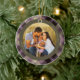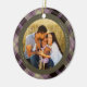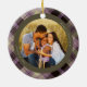 L'ornement de vacances rustique dispose d'une photo circulaire centrale encadrée, avec nom customisé et Joyeux Noël en simple typographie. Cet ornement classique est orné d'un motif traditionnel violet et d'oliviers.