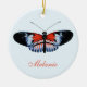 Une peinture élégante et réaliste d'un papillon Piano Key, aux tons noir, rouge et bleu avec des accents blancs. Ce design est classique et met l'accent sur la nature. Le papillon Piano Key est aussi connu comme le facteur et son nom scientifique est Heliconius melpomene. Art de Letizia Morley.