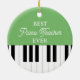 Grandes touches piano ornement arbre de Noël pour un pianiste, pianiste, étudiant, enseignant, musicien, instructeur, enfants, amis, etc. Une touche de piano noir et blanc avec une jolie sonnette de jingle sur fond vert, typographie moderne "Meilleur Enseignant de piano jamais". Elégant cadeau de décoration de vacances personnalisées pour lui. Joli accessoires de Noël pour les amis et la famille.