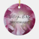 Invitation vos amis et votre famille d'être un accompagnateur nuptial à la fête de mariage de votre prochain mariage avec la belle Peony rose Will You Be My Bridesmaid Round Ornament. Modifiez le texte pour créer une volonté que vous soyez ma femme d'honneur ou une fille de fleurs, si vous le souhaitez. Cet élégant ornement d'invitation de Bridesmaid présente une numériquement photo macro florale peinte en gros plan d'une fleur de pivoine rose des deux côtés.