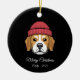 Keep things cozy this winter with this adorable Pixel Art Beagle Dog Winter Hat Ceramic Ornament! Featuring the sweet face of a Beagle with a cool red knit beanie, this dog is designed in a charming retro 8-bit style and set against a sleek black background for a high-contrast, modern look. It's the perfect Christmas gift for Beagle owners, dog lovers, hipsters, and fans of unique, stylish pixel art. This high-quality ceramic circle ornament is fully customizable—easily add a pet's name, a family name, and the year (like 'Merry Christmas Emily - 2025') to create a treasured, one-of-a-kind keepsake for your Christmas tree.