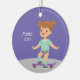 Cet adorable ornement de skateboard est parfait pour un enfant actif qui aime monter à bord. Célébrez l'activité préférée de votre enfant avec cet ornement personnel qui met en vedette une brune sur un skateboard violet.