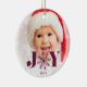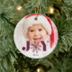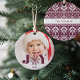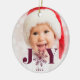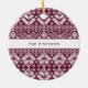 Un ornement de vacances doux et festif présente votre photo préférée avec "JOY" recouvert de lettres de prune bordeaux. Une illustration de flocon de neige remplace le "O". Personnalisez avec l'année en dessous. L'ornement s'inverse pour révéler un motif de pull nordique festif.