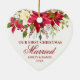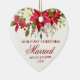 Elégante Aquarelle Rouge Poinsettia Floral Notre premier Ornement Marié de Noël