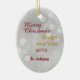 Sur le devant de cet ornement de Fêtes est l'image d'un Chien de Pointeur Allemand aux cheveux courts portant un chapeau de Père Noël et enveloppé de lumières de Noël colorées. L'image est placée contre un arrière - plan festif de livres d'argent. Le dos de l'ornement a le même arrière - plan avec le texte personnalisé qui dit actuellement "Joyeux Noël Bonne Année", la date et votre signature. Mignonne pour tout le monde, mais surtout pour les fans de Pointer.