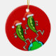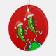 Pois de Noël amusants sur terre - illustration de deux pois portant des chapeaux de Père Noël dansant sur la planète terre.