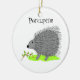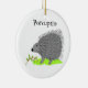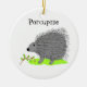 Un mignon porc-épic caricaturé sur une parcelle d'herbe verte avec branche d'arbre de feuilles et baies dessus.