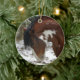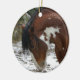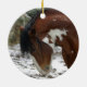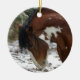 Le tonnerre, un étalon américain de Mustang, se promène fièrement dans la neige. L'ornement parfait pour le sapin de Noël de tous les amateurs de chevaux.