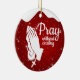 Pray without ceasing, Religious Holiday Ceramic Ornament with berry red snow glistening, Praying hands capturing the Christmas magic and joy of a Christian season. On the back, the sacred writing, Matthew 6:10 "Thy kingdom come. Thy will be done in earth, as it is in heaven" all in customizable text, ready for you create your favorite bible verse in a festive devotional design hanging decorations. Order your Christ teachings testaments today and make your custom inspirational doctrine keepsakes extra special with divine passages of the word of our Lord! 🎄⛪️