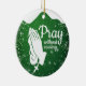 Pray without ceasing, Religious Holiday Ceramic Ornament with green sparkle glistening, Praying hands capturing the Christmas magic and joy of a Christian season. On the back, the sacred writing, Matthew 6:10 "Thy kingdom come. Thy will be done in earth, as it is in heaven" all in customizable text, ready for you create your favorite bible verse in a festive devotional design hanging decorations. Order your Christ teachings testaments today and make your custom inspirational doctrine keepsakes extra special with divine passages of the word of our Lord! 🎄⛪️