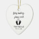 Share your most joyful news in a way they’ll never forget with this Personalized Pregnancy Announcement Christmas Ornament. Featuring a funny message “Baby loading...please wait,” with an image of tiny baby feet and a heart in the center. This cute, simple ornament can be customized with your baby’s name and arrival date for a truly personal touch.