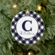 Cet ornement de style ferme est décoré dans un style classique marine et de buffle blanc chèque design personnalisé avec le nom initial et le nom de famille à l'avant. Ajoutez votre photo de famille à l'arrière de l'ornement.