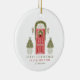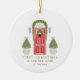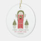 Célébrez le premier Noël dans votre nouvelle maison avec ce design d'aquarelle mignon avec une illustration d'une porte rouge - décoré pour la saison des fêtes et deux arbres de Noël.