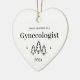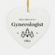 Premier Noël comme ornement cardiaque gynécologue. Élégante porcelaine céramique ornements de vacances en blanc avec lettrage noir. Avec des arbres de Noël et des étoiles.