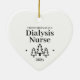 Premier Noël en tant qu'infirmière de dialyse ornement cardiaque pour un nouvel emploi en soins infirmiers. Élégante porcelaine céramique ornements de vacances en blanc avec lettrage noir. Avec des arbres de Noël et des étoiles.