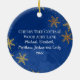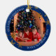Un ornement photo personnalisé pour célébrer votre premier Noël dans votre nouvelle maison. Le modèle est prêt pour vous à ajouter votre propre photo, qui sera encadrée d'une bordure bleue. Il est décoré avec des flocons d'or et les mots "Notre premier noël dans notre nouvelle maison dans notre nouvelle maison ・ [année]" en lettres majuscules modernes. L'arrière de l'ornement est brossé bleu avec des flocons de neige dorés auxquels vous pouvez ajouter vos noms. Parcourez notre magasin pour trouver des modèles alternatifs.