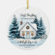 Ce joli ornement "PREMIER NOËL DANS NOTRE NOUVELLE MAISON" présente une aquarelle illustrant une maison blanche confortable et des pins recouverts d'une couverture moelleuse de neige. La scène hivernale sereine ajoute une touche de chaleur et de nostalgie, ce qui en fait le parfait souvenir pour célébrer les premiers vacances d'un couple ou d'une famille dans leur nouvelle maison. Avec son design charmant et son ambiance festive, cet ornement ornera magnifiquement n'importe quel arbre de Noël et servira de rappel précieux de cette étape importante année après année. Cliquez sur "Personnaliser ce modèle" pour customiser le message et les noms. Si vous souhaitez modifier les polices, les placements et les couleurs des textes, allez à "Modifier à l'aide de l'outil de conception".