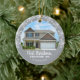 Un ornement parfait pour marquer le premier Noël dans une nouvelle maison. Le design offre un cadre photo pour une photo de votre nouvelle maison et du texte personnalisé à personnaliser avec votre nom et votre année. L'arrière - plan est gris et agrémenté de flocons blancs.