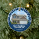 Un ornement parfait pour marquer le premier Noël dans une nouvelle maison. Le design offre un cadre photo pour une photo de votre nouvelle maison et du texte personnalisé à personnaliser avec votre nom et votre année. L'arrière - plan est bleu foncé et agrémenté de flocons blancs.