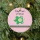 Un design sucré pour le premier ornement de Noël d'un bébé. Petite tortue verte sur un arrière - plan rose.