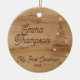 Premier ornement de Noël pour bébé personnalisé 2025 - Arrière - plan en bois rustique avec nom de script et design d'arbre de Noël. Célébrez la première saison des fêtes de votre petit avec ce premier ornement de Noël rustique pour bébé 2025. Doté d’un arrière - plan de bois brun chaleureux, d’une police de caractères délicates pour le nom de votre bébé et d’une illustration minimaliste d’un arbre de Noël en ligne brune, cet ornement de conservation est le moyen idéal pour marquer un jalon si spécial. Une belle pièce d'héritage à chérir ou à offrir comme un nouveau cadeau de Noël de bébé réfléchi pour parents et grands-parents fiers.