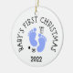 Une belle décoration d'arbre en céramique avec les pieds d'un bébé en bleu est le parfait souvenir de vacances pour les nouveaux parents et les membres de la famille. Customiser la date