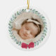 Célébrez le premier Noël de votre petite fille en décorant l'arbre avec un ornement personnalisé imprimé avec la photo de votre fille dans une simple couronne de verdure et un arc rouge. Sur le dos, vous pouvez ajouter le nom de votre fille et l'année où elle célèbre son premier Noël ! Un grand cadeau pour les nouveaux parents ainsi que les nouveaux grands-parents cette saison des Fêtes.
