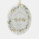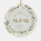 Chérissez vos premiers souvenirs avec ce joli ornement de Noël. L'élégant design comprend une couronne d'eucalyptus aux accents dorés. Le dos présente votre photo préférée. Le recto comprend votre nom et votre date de mariage. Ce ornement sera un trésor pour toujours.