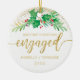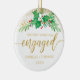 Pour votre premier Noël engagé, cet élégant ornement de vacances présente une branche de saint peint en aquarelle accentuée par la fausse parties scintillant d'or. Ci-dessous il lit en faux or parties scintillant typographie de script "Notre premier Noël engagé" avec vos prénoms et l'année à personnaliser. L'arrière de l'ornement est le même que l'avant ! Conçu par l'artiste ©Susan Coffey.