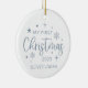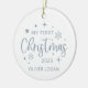Typographie Bleue Dusty Festive, Mon premier Noël, ornement. Fonctionnalités, lignes de texte modèles pour le nom et l'année avec support de couleur bleue correspondant.