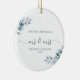 Les branches élégantes de feuillage d'hiver en bleu glacé et peintes en aquarelle font de la décoration délicate pour ce délicat et élégant ornement de Noël pour un couple marié avec le titre "notre premier Noël en tant que Mr et Mrs.". Moderne, simple et élégant.