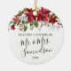 Élégant ornement de poinsettia fleurie de Noël pour le premier marié M. et Mme Nom. Couleurs rouge, blanc et vert. Personnalisez-les en ajoutant votre nom. Fait un cadeau parfait pour votre conjoint (mari ou femme)