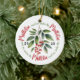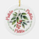 Célébrez votre premier Noël en couple marié avec ce magnifique ornement personnalisable. Doté d'une élégante typographie de script qui dit, "Meet Me Under the Mistletoe", dans une palette de couleurs rouge et verte festive, cet ornement est conçu pour capturer la joie de cette étape spéciale. L'avant présente une aquarelle illustrant les feuilles et les baies rouges d'orteils, tandis que l'arrière comprend l'expression "Marié de Noël", avec espace pour ajouter votre propre photo plus l'année en cours. Personnalisez-le avec votre propre texte ou sentiment pour créer un souvenir unique qui sera chéri pour les années à venir. Créez un cadeau parfait pour les couples mariés à l'occasion d'un mariage sur leur sapin de Noël, en souvenir de leur première période de vacances.