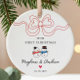 Célébrez votre amour de cette saison de vacances avec notre ornement de Noël personnalisé avec un adorable couple de bonhomme de neige orné d'un arc en ruban tendance. Ce charmant gardien est parfait pour commémorer votre premier Noël ensemble, ajoutant une touche de chaleur et de joie à votre décor festif. Conçu avec soin, il peut être customisé pour inclure vos noms ou une date spéciale, en faisant un cadeau unique qui sera chéri pour les années à venir. Embrassez l'esprit de la saison et créez des souvenirs durables avec ce magnifique ornement.