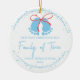 Commémorez votre premier Noël en famille de trois personnes avec cet ornement charmant et personnalisable conçu spécialement pour les familles accueillant un petit garçon cette année. Le recto comprend des champs modifiables pour les noms de famille, l'année et d'autres détails personnels, tandis que le verso vous permet d'ajouter votre photo de famille préférée. Célébrez cette étape importante avec un gardien personnalisé qui sera chéri pour les années à venir. Parfait pour accrocher votre arbre, cet ornement capture la joie et la magie du premier Noël de votre bébé garçon. Personnalisez aujourd'hui pour créer un souvenir unique !