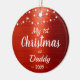 Célébrez votre premier Noël en tant que papa avec cet ornement photo à cordes de Noël. Ajoutez votre nom, votre photo préférée et votre année à ce design unique pour un accent festif à votre arbre de Noël. Tu n'oublieras jamais ton premier Noël de papa et cet ornement en est le parfait rappel !
